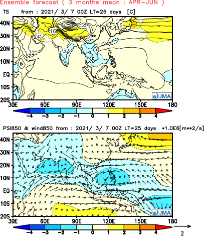 Products of long-range forecast from World Meteorological Centre (WMC) Tokyo are available.