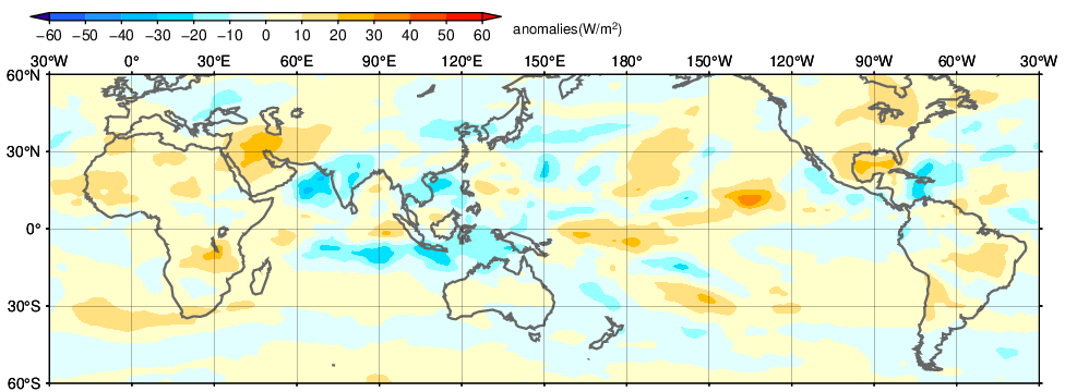 - インド洋では、熱帯の南東部で顕著な正偏差、熱帯の西部で顕著な負偏差となった。