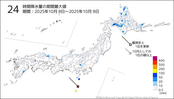 特定期間の降水の状況(2025年10月 8日~2025年10月 9日)