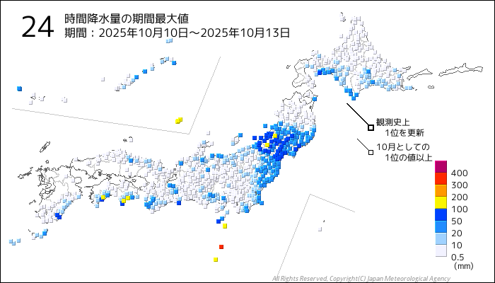 特定期間の降水の状況(2025年10月10日~2025年10月13日)