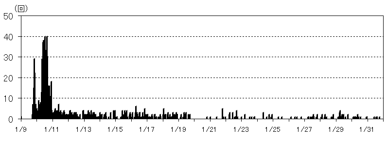 図2 雌阿寒岳 火山性地震の時別回数(2008年1月9日〜31日)