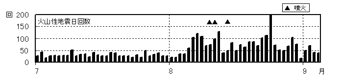 図2 浅間山 火山性地震の日別回数(2008年7月1日〜2008年9月4日)