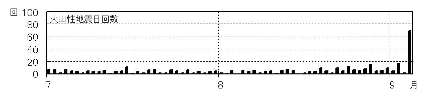 9月2日から、振幅のやや大きな火山性地震の回数が増加し始め、4日にはさらに回数が増加し、火山活動が高まっていると考えられることから、噴火警戒レベルを1(平常)から2(火口周辺規制)に引き上げた。
