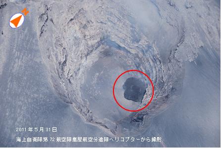 31日に海上自衛隊第72航空隊鹿屋航空分遣隊の協力を得て行った上空からの調査では、火口内に蓄積された溶岩に大きな変化はなかった。白色噴煙は、主に火口縁辺の南東側から火口縁上100m程度上がり、南東に流れていた。