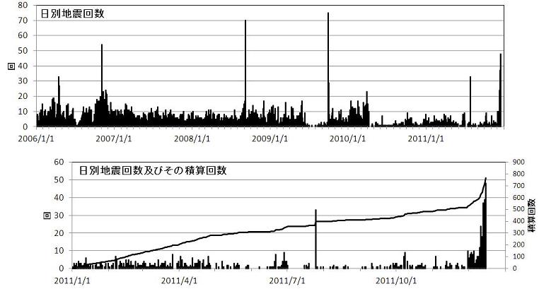 地震活動は、2011年2月末頃から比較的活発な状態が続いている。
