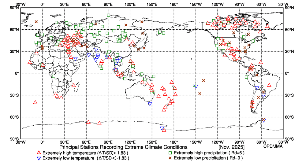 ![]() Fig.13 Monthly mean 850-hPa temperature and anomaly in the Northern Hemisphere (November 2025) The contours show 850-hPa temperature at intervals of 4 degree C. The shading indicates its anomalies. The base period for the normal is 1991-2020. |