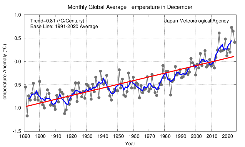 ![]() Fig.13 Monthly mean 850-hPa temperature and anomaly in the Northern Hemisphere (December 2025) The contours show 850-hPa temperature at intervals of 4 degree C. The shading indicates its anomalies. The base period for the normal is 1991-2020. |