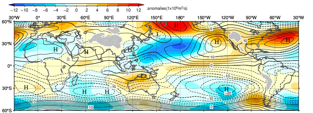 ![]() Fig.10 Monthly mean 500-hPa height and anomaly in the Northern Hemisphere (March 2026) The contours show 500-hPa height at intervals of 60 m. The shading indicates its anomalies. The base period for the normal is 1991-2020. |